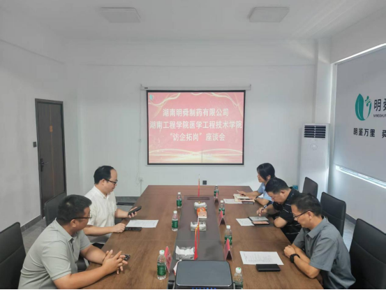随后,莫中成一行转赴湖南明舜制药有限公司进行访企拓岗。会议在公司四楼会议室举行,由明舜制药总经理李科亮主持。公司销售部副总熊非、研发总监文萌等共同参与座谈。
