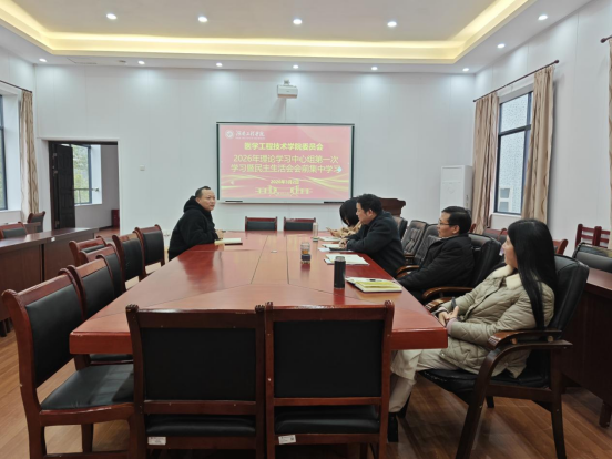 党委在医工楼407会议室召开2026年度理论学习中心组第一次集中学习,同时开展2025年民主生活会会前集中学习。会议由学院党委书记黄闯主持,全体党委班子成员参加。