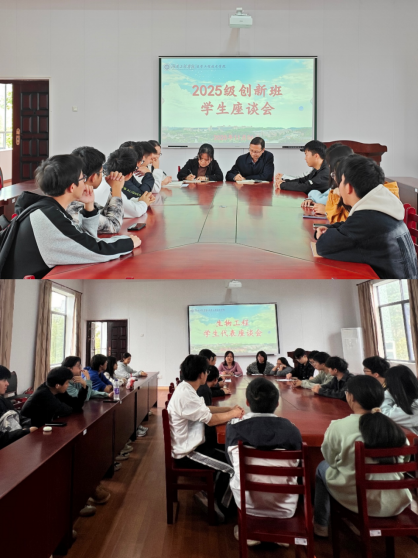 于2025年11月6日至7日,在医工楼407会议室分别组织召开了2025级创新班学生代表座谈会和生物工程专业学生代表座谈会。院长莫中成、副院长孙静、教务办李红、生物工程系主任蒋开军,以及相关教师代表和学生代表共同参加了此次座谈。会议由孙静主持。