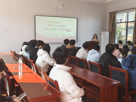 许璐结合社会发展现状与青年成长特点,分析了青年在学业、职业与个人价值实现中的机遇与挑战。她强调,在全面建设社会主义现代化国家的关键时期,青年应守正创新、自信自强,将个人成长的“小目标”融入国家发展的“大蓝图”,在实践中锤炼本领,在奋斗中增长才干。她鼓励学生珍惜时代机遇,以青春激情投身创新创造,主动肩负起民族复兴的历史重任。