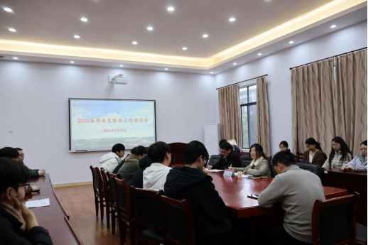 在医工楼407会议室召开2026届毕业生就业工作座谈会。会议由学院党委副书记罗荃主持,院长莫中成、班主任蒋开军出席,部分毕业生参会。