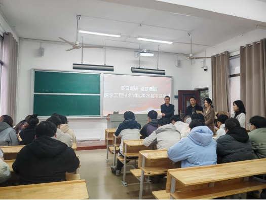 在北校区二教404开展2026届考研学子慰问活动。学院院长莫中成、党委副书记罗荃、副院长孙静、刘海桥亲临现场,为冲刺阶段的考研学子送上冬日的温暖与诚挚祝福。